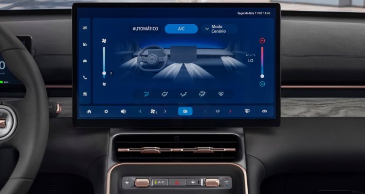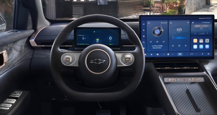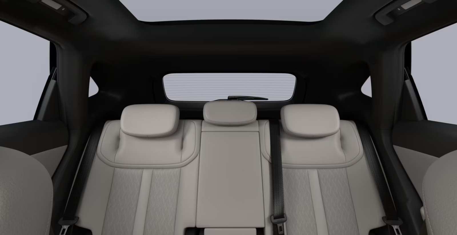 O Captiva EV está disponível com interiores Jet Black e Sandy Soul, na cor Cinza Diamantina. Já nas cores Branco, Azul e Dourado, o acabamento interno é Jet Black, elegante e acolhedor, que valoriza cada detalhe do espaço interno.